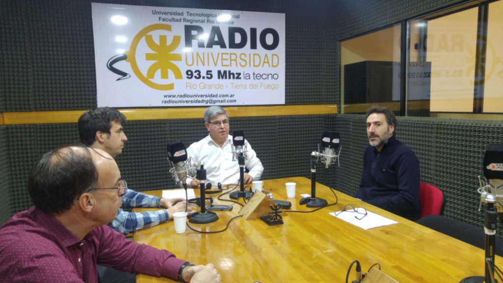 Río Grande.- El diputado del PRO Juan Carlos “Cali” Villalonga, integrante de la alianza Cambiemos, disertó en esta ciudad sobre cambio climático y energías renovables, y visitó los estudios de Radio Universidad 93.5 acompañado del legislador radical Oscar Rubinos.
