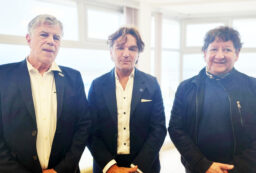 Una de las familiares hizo entrega de una bandera argentina al Secretario de Educación, con la inscripción del Submarino ARA San Juan y el nombre del tripulante, para que la misma sea entregada a la docente que dicta clases en la Escuela de Puerto Almanza “44 Héroes del Submarino ARA San Juan».