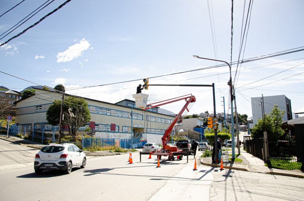 Las tareas forman parte de la renovación y ampliación de la red semafórica que sumó las esquinas de Perón y Fuegia Basket, Isla Año Nuevo y Kuanip y la renovación del semáforo ubicado en Malvinas Argentinas y Jainén.