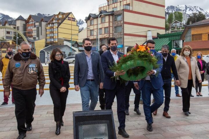 El ministro del Interior Wado De Pedro visitó la Plaza Islas Malvinas y el Monumento Héroes de Malvinas, junto a la diputada nacional Carolina Yutrovic, al senador Matías Rodríguez y a los tres intendentes de la provincia, Walter Vuoto, Daniel Harrington y Martín Pérez, donde se reunió y conversó con excombatientes de Malvinas e hizo entrega de una ofrenda en homenaje a los caídos.