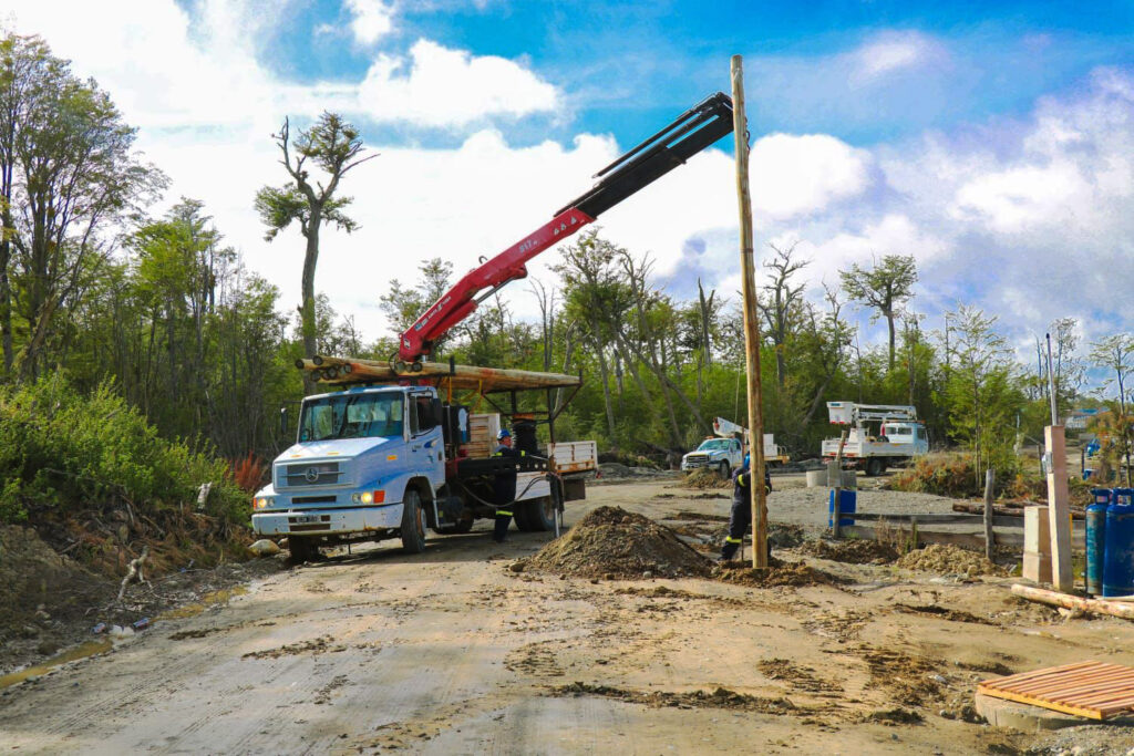 En la ciudad de Tolhuin se están llevando adelante una serie de trabajos destinados a acercar los servicios a los diferentes barrios. En esta oportunidad, el Municipio dispuso de un conjunto de recursos propios abocados a motorizar la conexión eléctrica en el Barrio “Altos de la Montaña”.
