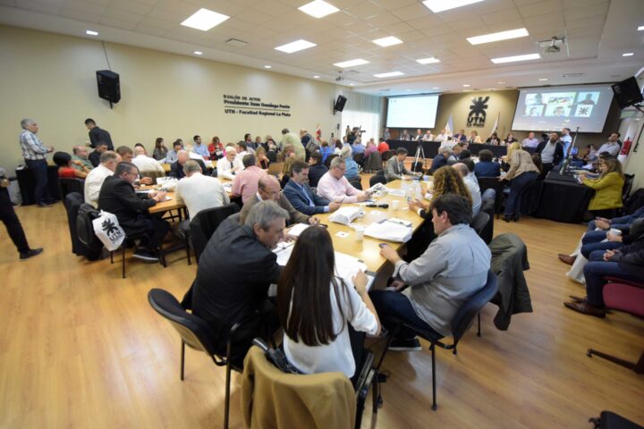 LA PLATA. – El Salón Presidente Juan Domingo Perón de la Facultad Regional de La Plata fue el escenario donde se concretó una nueva sesión del Consejo Superior de la UTN. El evento estuvo presidido por el Rector Ing. Rubén Soro y sus sesenta miembros, incluyendo a los fueguinos Ing. Mario Ferreyra y el Ing. Francisco Álvarez, en su rol de secretario de Políticas Institucionales y vicedecano y Consejero Superior respectivamente.