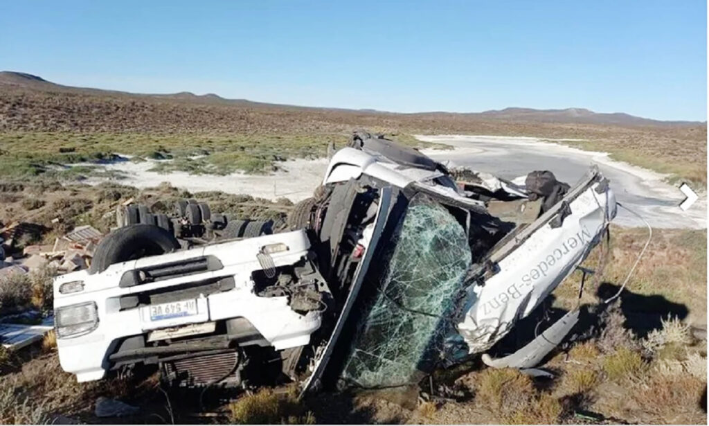 Caleta Olivia.- El accidente fue protagonizado por un camión Mercedes Benz (dominio AF 549 VE) con semirremolque, el cual circulaba en dirección norte, procedente de Río Grande con destino a la provincia de Buenos Aires transportando una carga de silo-bolsas.
