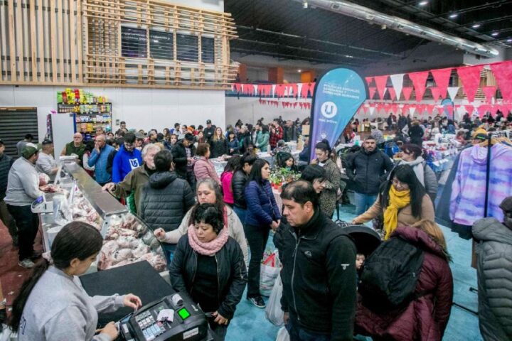 Ushuaia.- El microestadio Cochocho Vargas fue el escenario de la multitudinaria propuesta en la que participaron cerca de 300 emprendedores y un Mercado Concentrador con importantes ofertas, promociones y descuentos en cortes de carnes, frutas, verduras, alimentos secos y productos de limpieza.