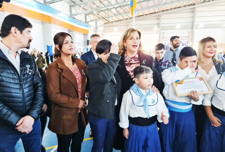 La ceremonia fue encabezada por el Gobernador Gustavo Melella junto a la Vicegobernadora Mónica Urquiza, oportunidad en la que se entregaron reconocimientos a Convencionales Constituyentes de 1991 y a distintos referentes de la comunidad que asistieron a la Casa del Deporte en Río Grande.