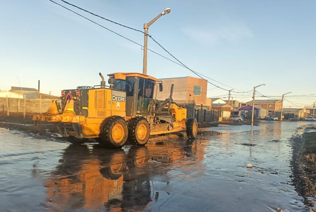 Debido a la suba de la temperatura de los últimos días y el deshielo, el área de Obras Públicas realiza un despliegue en colaboración con máquinas para escurrir el agua que se acumula; así como la limpieza de sumideros. A su vez, se llevan adelante labores de mantenimiento en en las calles de ripio para garantizar la trazabilidad y seguridad vial