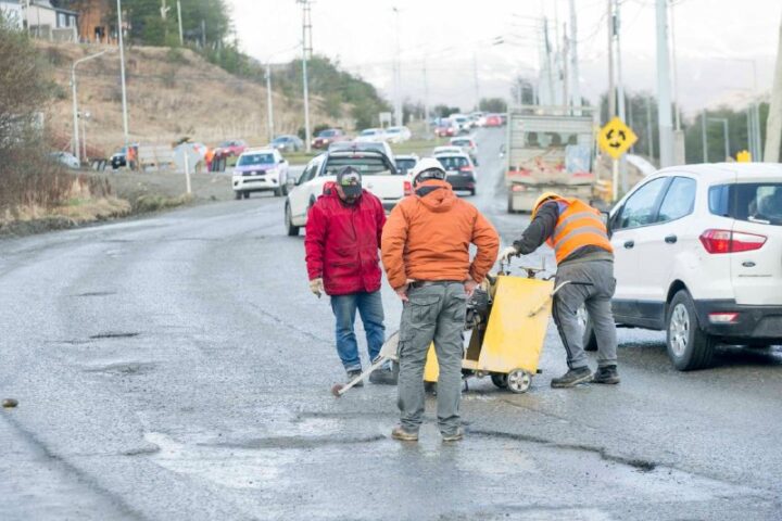 En el marco del Programa de Mejoramiento Vial de la Municipalidad de Ushuaia se realizaron trabajos en la avenida Héroes de Malvinas, en inmediaciones del Colegio Polivalente de Artes. También se llevó adelante trabajos de bacheo en distintos tramos de la avenida Maipú, en el marco del plan de recuperación vial de la ciudad.