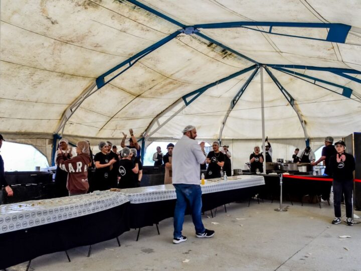 Gran cantidad de vecinos se acercaron a la plaza Malvinas durante todo el día para conocer el trabajo que realizaba GDS en la producción de la paella. Una vez finalizada la cocción, fueron entregadas la totalidad de porciones ante una incesante demanda de vecinos y vecinas que buscaron disfrutar de la paella y formar parte de este tradicional almuerzo en el día de la ciudad.