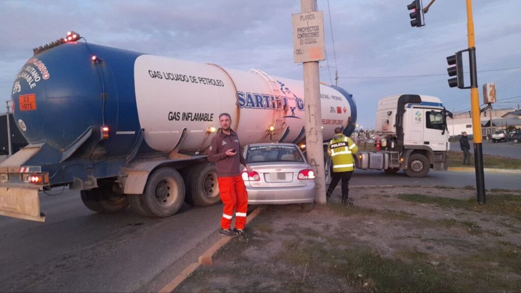 Un Chevrolet Corsa quedó incrustado debajo de un camión de la empresa Sartini Gas quedando aprisionado contra un poste del alumbrado público. Hay una persona herida que fue llevada con urgencia al hospital. El hecho ocurrió en D’Agostini e Islas Malvinas del Parque Industrial de Río Grande.