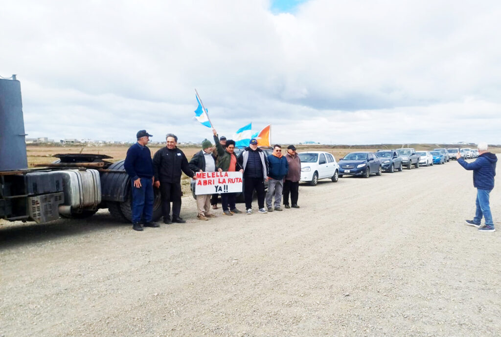 Río Grande.- Portando una bandera argentina con la leyenda ‘Melella abrí la ruta ya!’, un grupo de vecinos exigió la continuidad de los trabajos para la reapertura de la Ruta 7.