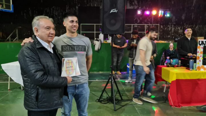 Este viernes a la noche el Club Universitario llevó adelante su fiesta de cierre de fin de año, con dos campeonatos obtenidos en básquet y otros grandes posicionamientos en otras disciplinas deportivas. Lautaro Miranda, a cargo transitoriamente de la institución, entregó un reconocimiento y expresó el agradecimiento general al Ingeniero Mario Félix Ferreyra, Decano de la UTN fueguina y presidente de la FUNDATEC, por su permanente apoyo al ‘Uni’.