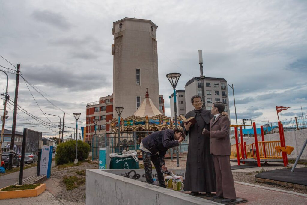 Río Grande.- A través de la Subsecretaría de Cultura, el Municipio lleva adelante tareas de restauración y renovación en la escultura de Don Bosco, con el fin de poner en valor el patrimonio artístico urbano y conmemorar el 150° aniversario de presencia salesiana en Argentina.