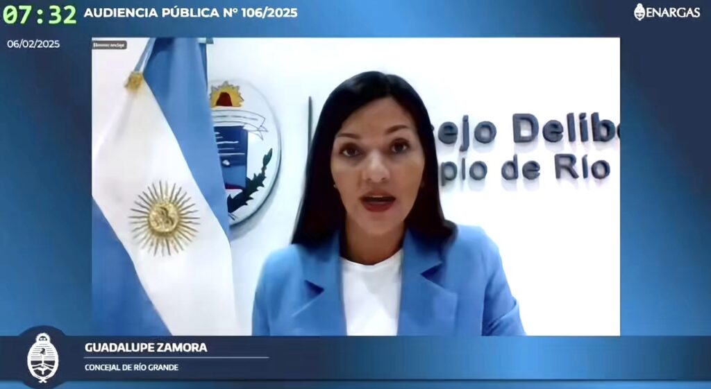 Así lo expresó la Presidenta del Concejo Deliberante de Río Grande, Guadalupe Zamora en el marco de la participación de la Audiencia Pública sobre los Servicios del Gas a nivel nacional, que incluirían futuros aumentos en las tarifas, impactando en el bolsillo de las familias fueguinas.