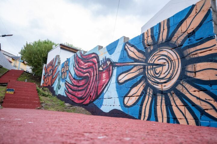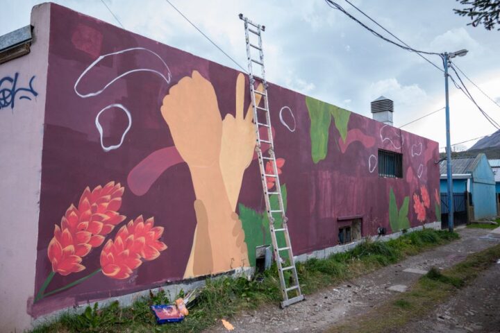 Ushuaia.- Con obras a lo largo y ancho de la ciudad, que continuarán siendo trabajadas hasta el día 23 que finalizará el encuentro, vecinos y vecinas podrán recorrer las piezas que se emplazan bajo la temática “Hacernos Comunidad”, donde se busca reflejar el comunitarismo, la unidad, identidad y empatía. En Piedrabuena N° 118 y Rubinos N° 120 se encuentran trabajando los artistas ushuaienses Antonela Gualla y Rodrigo Crespo; en Alem N° 2794 y Lapataia y Puerto Español los riograndenses Jorge Bernard y Sofía Hst; En Alem N° 977 Atis de Río Negro, Adrícola Terrestre en Teshne N° 659 y en 12 de Octubre N° 704 El.Keni de Buenos Aires, Nunett de San Juan en Las Lengas N° 630; Sole Moisas de Ayacucho en Los Castores N° 1345, Luxor de La Plata en Hielos Continentales N° 700 y Tatu Daels, artista invitado de Buenos Aires, en las 245 Viviendas Tira N° 18.