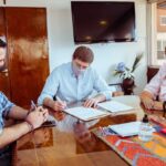 De la firma del convenio de contratación participaron la Ministra de Obras Públicas del Gobierno provincial, Gabriela Castillo; el director provincial del Servicio Penitenciario, Ariel Ciares y el representante de la empresa Robinson Vargas.