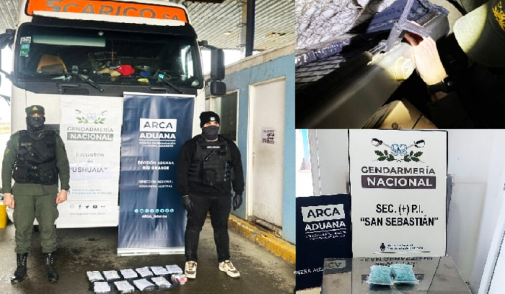 Un camión perteneciente a la empresa Scarico S.A., con sede en Junín, fue interceptado en el Paso Internacional San Sebastián, con un cargamento de 10,9 kilos de cocaína y 199 pastillas de metadona, según informaron fuentes oficiales. El hecho generó fuerte repercusión política y social, tanto en Tierra del Fuego como en la ciudad bonaerense.