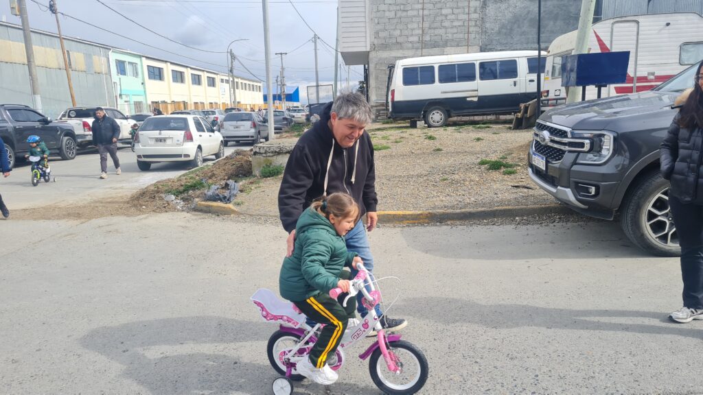 Río Grande.- El viento fueguino soplaba con fuerza, pero no logró detener la energía de los pequeños del Jardín Rosarito Vera Peñaloza de la FUNDATEC. En una mañana fresca pero llena de entusiasmo, las distintas salitas salieron a recorrer las inmediaciones del jardín montados en bicicletas, triciclos y patines, acompañados por sus familias y docentes.