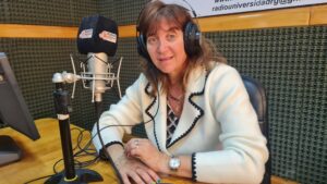 La funcionaria llegó acompañada por el vicedecano y decano electo, Ing. Francisco Javier Álvarez, con quien dialogó en los estudios de Radio Universidad 93.5 MHz para el programa ‘La mañana de la Tecno’, donde explicó los objetivos de su visita.
