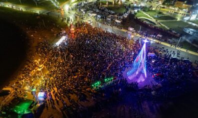 Posted in: Actualidad, Generales, MunicipalAnte una multitud de vecinos y vecinas que se acercaron al Cartel de Ushuaia, en la Pasarela “Luis Pedro Fique”, la Municipalidad de Ushuaia llevó adelante el tradicional encendido del Árbol Navideño, en una jornada especial donde miles de ushuaienses esperaron la medianoche para dar inicio al 8 de diciembre.
