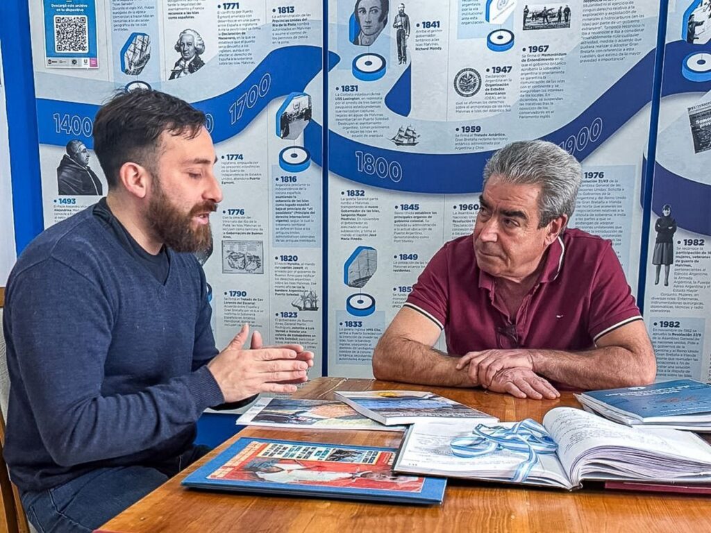 El secretario de Asuntos de Malvinas de la Municipalidad de Ushuaia, Dante Asili, recibió al periodista de la Unión Malvinizadora Argentina, Luciano Rodrigo Moreno Calderón, en el Museo Histórico “Espacio Pensar Malvinas”.