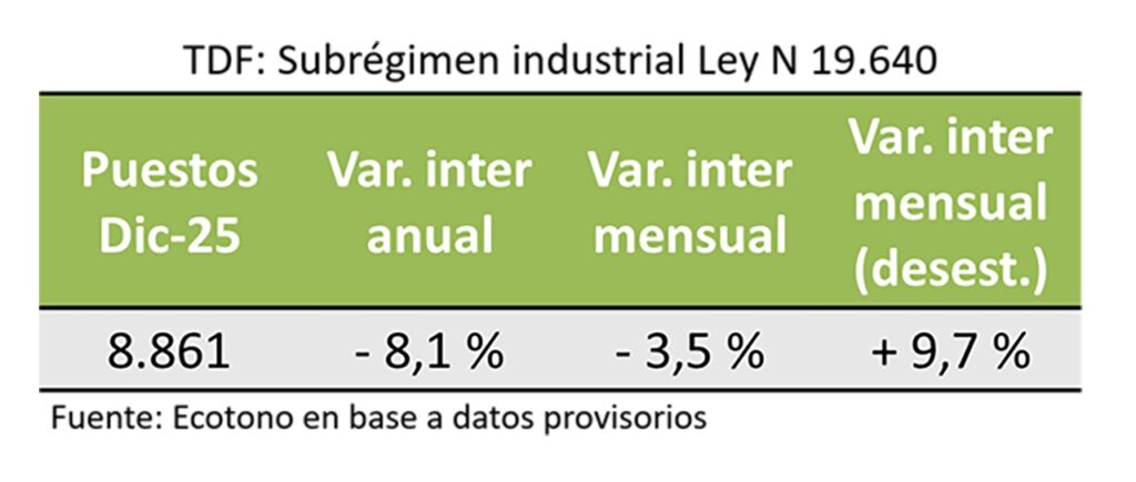 De acuerdo con el análisis elaborado por el licenciado Federico Rayes, titular de la consultora Ecotono, el mercado laboral industrial promocionado cerró el último mes de 2025 con señales mixtas, combinando una reducción nominal del empleo registrado con una recuperación parcial en la dinámica mensual desestacionalizada en Tierra del Fuego. “Para el último mes de 2025, la merma en los empleos directos fue de 319 puestos, más aun hubo un incremento del 9,7% en términos mensuales desestacionalizados. En particular, se observó una caída de 252 puestos en la industria electrónica. La electrónica sostiene 7.300 puestos”, detalló el economista.