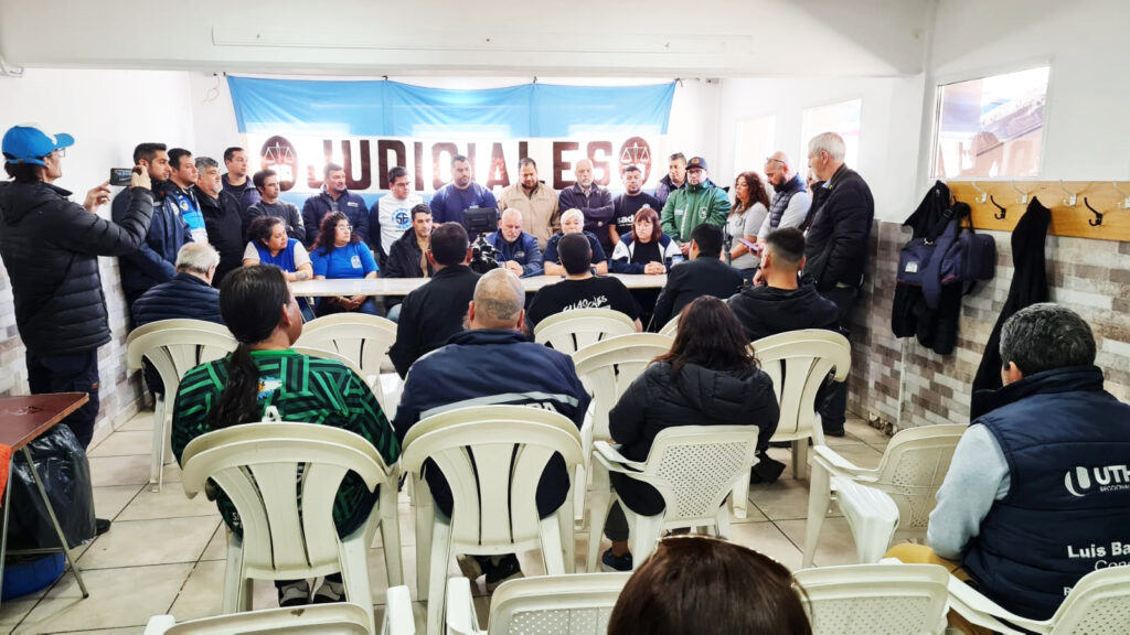 Río Grande.- En el marco del paro general decretado por la Confederación General del Trabajo (CGT) a nivel nacional, la delegación Río Grande realizó este jueves al mediodía una conferencia de prensa en el quincho sindical de la Unión de Empleados de la Justicia de la Nación (UEJN), donde expresó su rechazo a la reforma laboral que se debate en el Congreso.