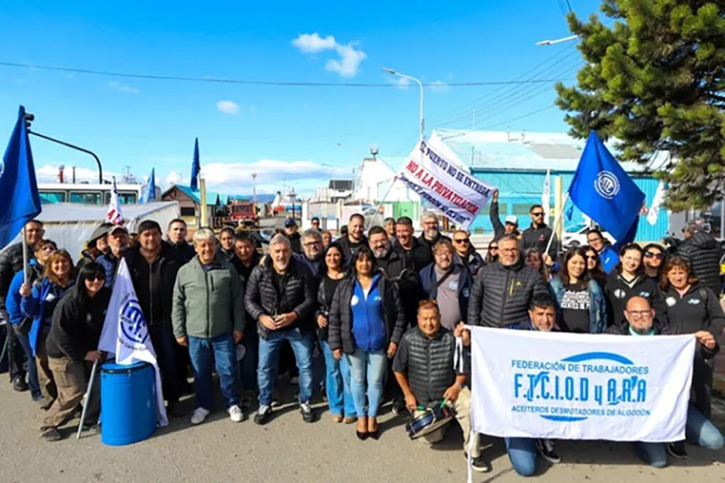 El Frente de Sindicatos Unidos (FreSU) que integran ATE, UOM, Aceiteros, Aeronáuticos y más de 100 organizaciones de las distintas centrales obreras se movilizó al Puerto de Ushuaia. Según señalaron, fue “en defensa de la soberanía nacional y demandó el cese de su intervención por parte del Gobierno nacional”.