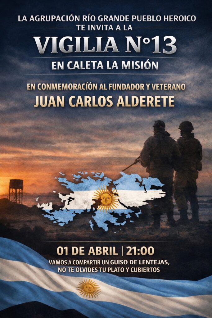 La periodista e influencer Marita Ojeda anticipó la 13ª edición de la Vigilia Fueguina en Río Grande, organizada por “Río Grande Pueblo Heroico”. El homenaje, que este año estará atravesado por la ausencia física de Juan Carlos Alderete, reafirma el reclamo de reconocimiento a los combatientes del continente y la memoria de los hechos ocurridos en la ciudad durante la Guerra de Malvinas.