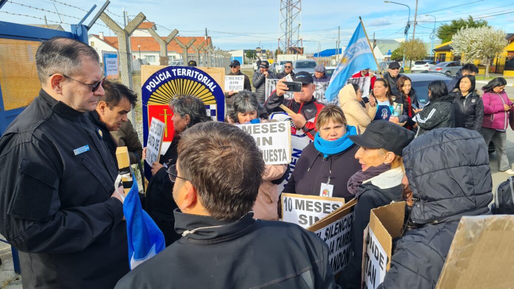 Los manifestantes fueron escuchados por el Secretario de Representación Política, Federico Giménez y por el Jefe de la Policía de Tierra del Fuego, Comisario General Jacinto Rolón.