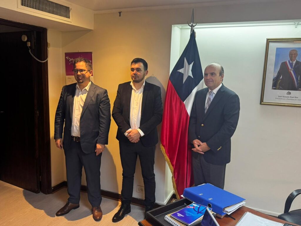 El encuentro tuvo lugar en la Embajada de Chile en Buenos Aires, donde Miguel Rodríguez y Santiago Pauli presentaron tres ejes centrales al flamante representante diplomático del país vecino: la reactivación de la Ruta del Fuego, la necesidad de avanzar hacia un paso integrado fronterizo y la revisión de restricciones logísticas que afectan el transporte de mercaderías.